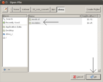 Выберите папку, в которую вы до этого распаковали архив с модулем. Там должны быть папки «mods.d» и «modules». Нажмите кнопку «OK».